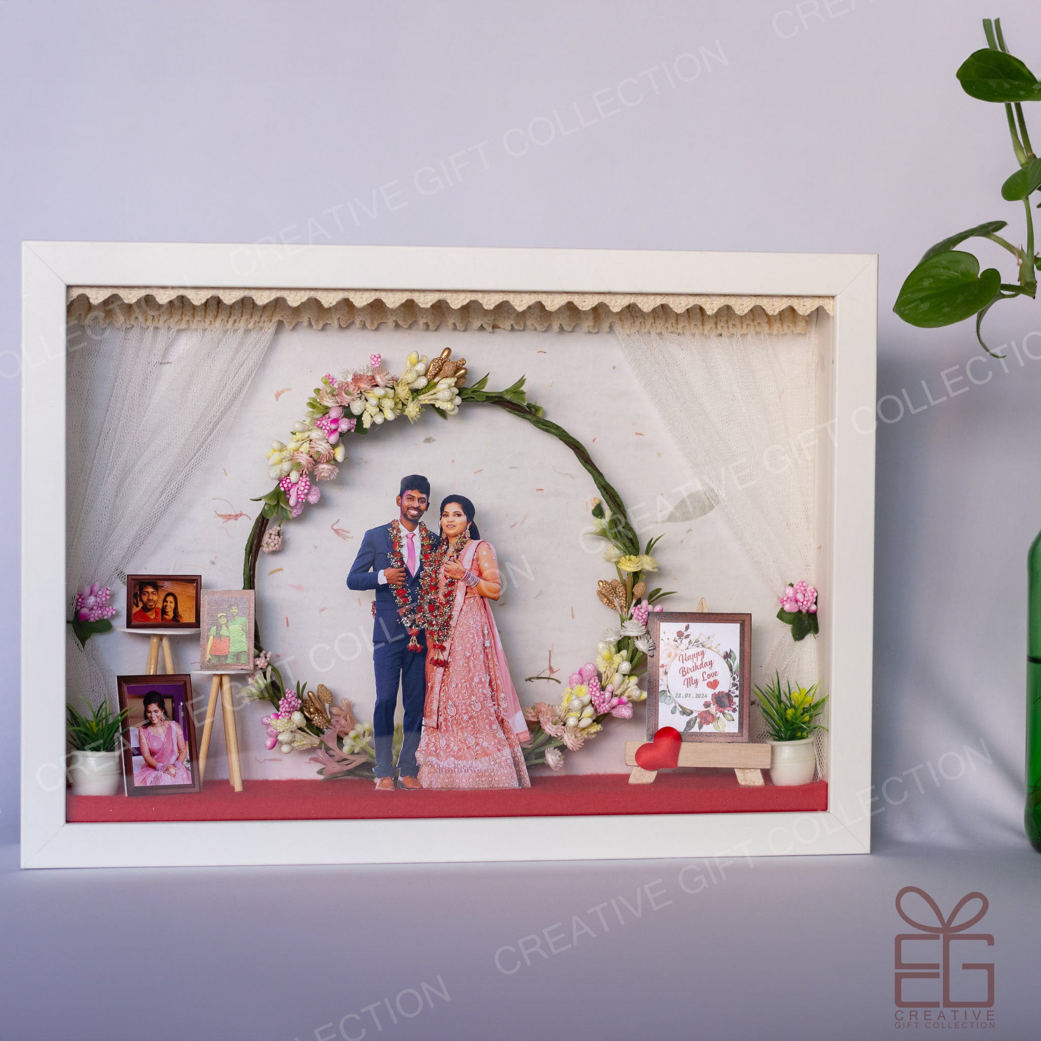 Personalized A4 Miniature Shadow Box | Wooden Arc Floral Wedding Decor