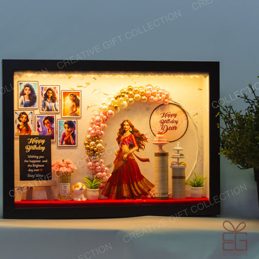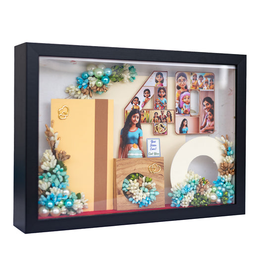 Personalized A4 Miniature Shadow Box | Birthday Decor with Mini Flowers & Balloons