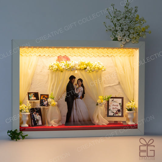 Personalized A4 Miniature Shadow Box | Floral Civil Wedding deco