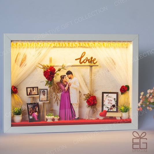Personalized A4 Miniature Shadow Box | Floral Curtain wedding deco